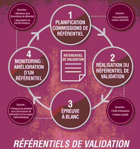 Une méthode stricte et rigoureuse permet de traduire les savoir- faire liés à un métier en des référentiels de validation des compétences. Leur précision et l’agrément des Centres permettent de garantir la fiabilité des Titres de compétence délivrés et reconnus par les gouvernements belges francophones. Les partenaires sociaux sont associés aux niveaux stratégique, normatif et opérationnel de la mise en place de la validation des compétences. Cela permet d’avoir d’être transparent, équitable et en adéquation par rapport au marché de l’emploi.